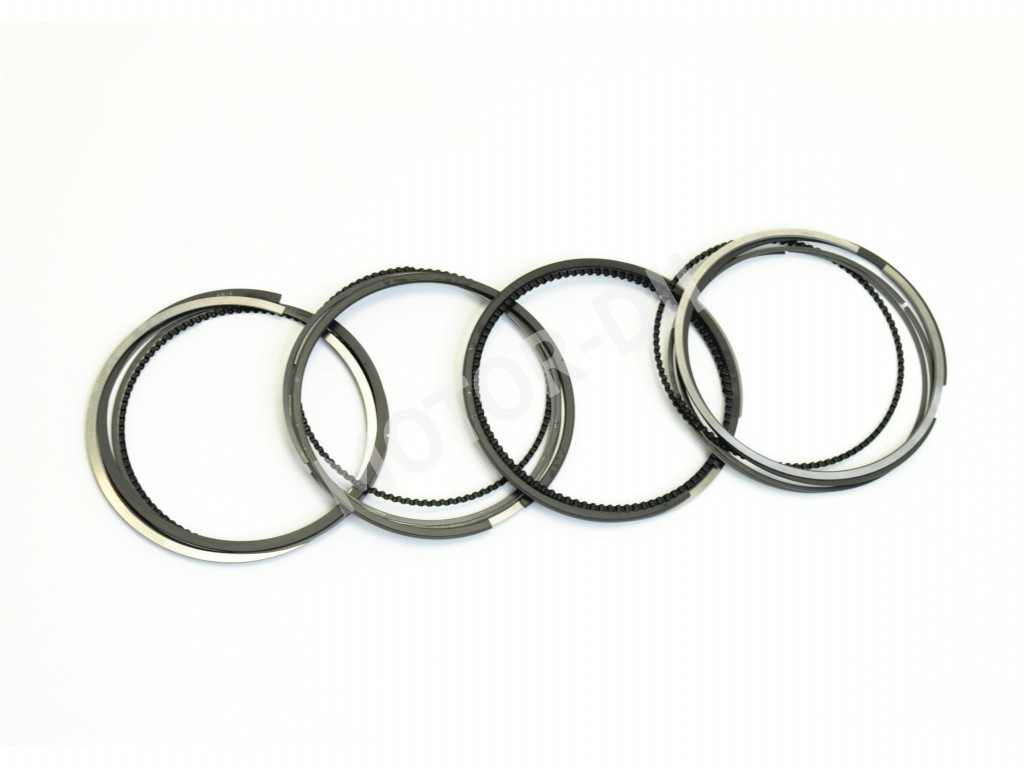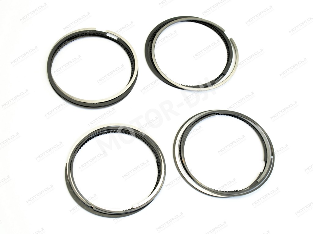 Q: Что входит в комплект на 4-цилиндровый двигатель? A: Комплект включает полный набор колец на все четыре поршня: по два компрессионных и одному маслосъёмному кольцу на каждый поршень. Всего 12 колец (4 поршня х 3 кольца).