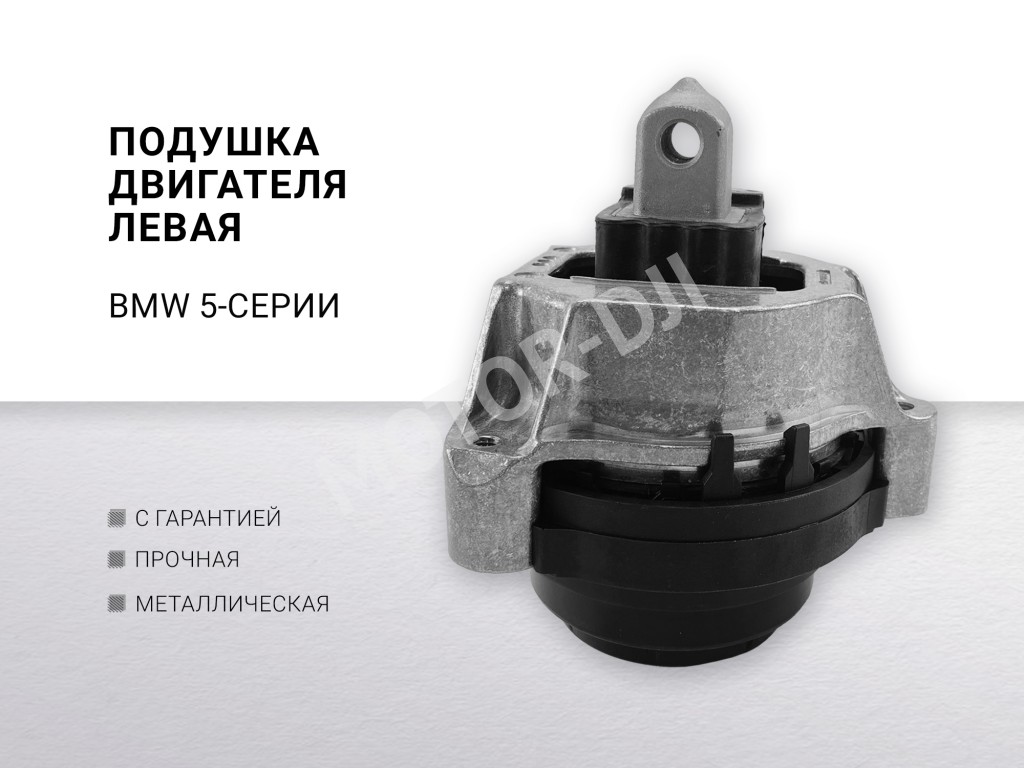 Левая подушка двигателя — это ключевой элемент системы подвески силового агрегата в современных автомобилях BMW 5-й серии. Это гидравлическая или гидромеханическая опора, которая крепит двигатель к кузову или подрамнику, гася вибрации и толчки, а также точно позиционируя мотор в моторном отсеке. Она играет решающую роль в обеспечении комфорта в салоне и защите кузова от вибрационных нагрузок.